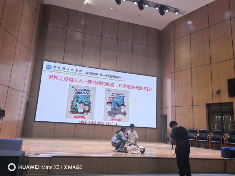 活动现场,地震预警中心专家以通俗易懂的语言,结合动画视频、案例分析,系统讲解了地震成因、灾害特点及避险逃生技巧。县卫健局急救专家则围绕震后自救互救主题,重点演示了心肺复苏、止血包扎等急救技能,邀请学生上台实践操作,现场指导纠正动作,确保理论知识真正转化为应急能力。