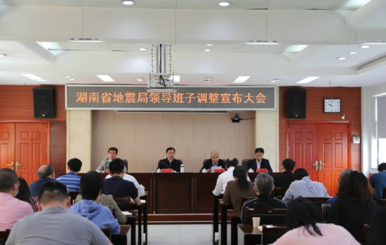 2021年5月8日上午,湖南省地震局召开领导班子调整宣布大会,会议由中国地震局人事教育司司长唐景见主持,中国地震局党组成员、副局长陈小军出席会议,局机关全体干部职工及事业单位副科、中级职称以上人员参加会议。