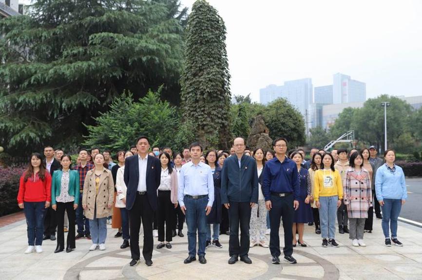 9月30日上午,湖南省地震局在办公楼前坪举行庆祝中华人民共和国成立71周年“升国旗 唱国歌”仪式,全体在长干部参加。