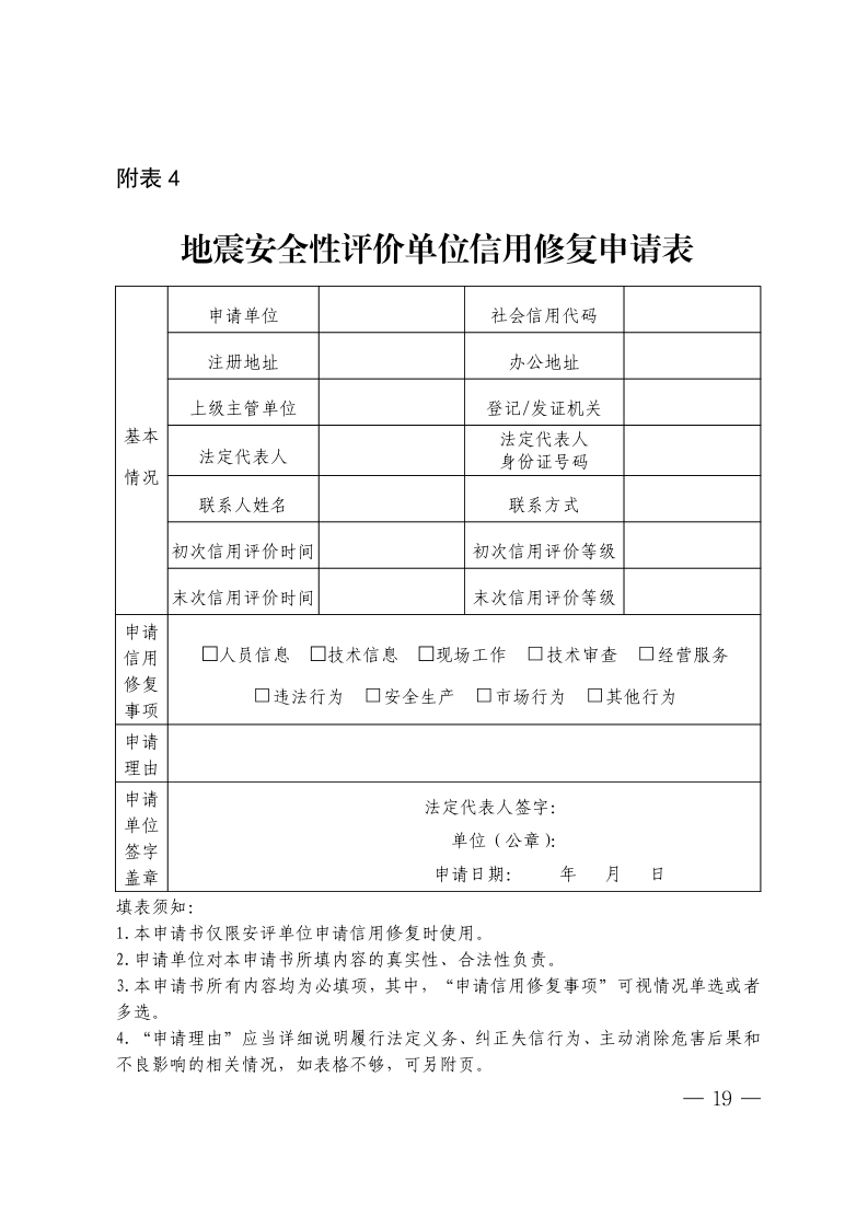 附表4 地震安全性评价单位信用修复申请表