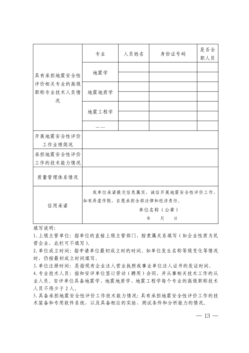 附表1 地震安全性评价单位信息承诺表