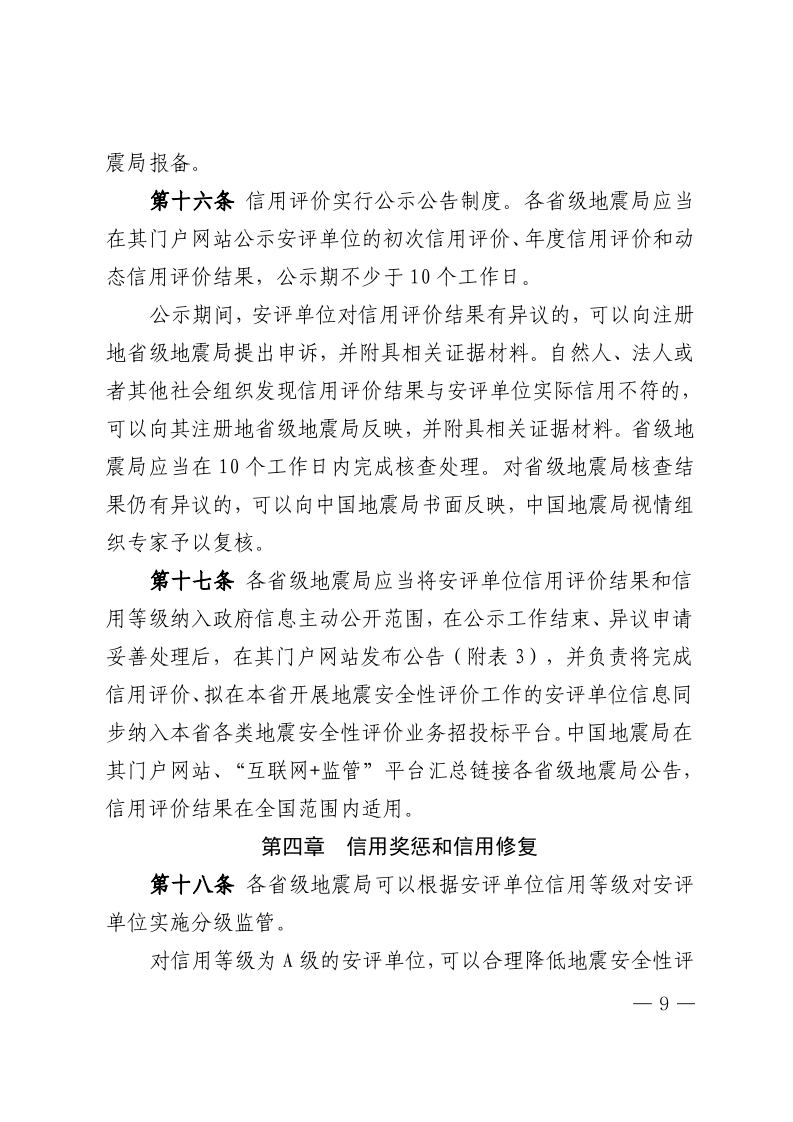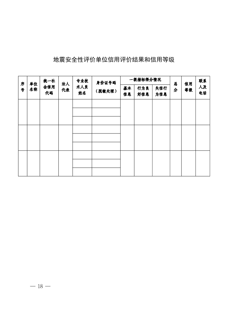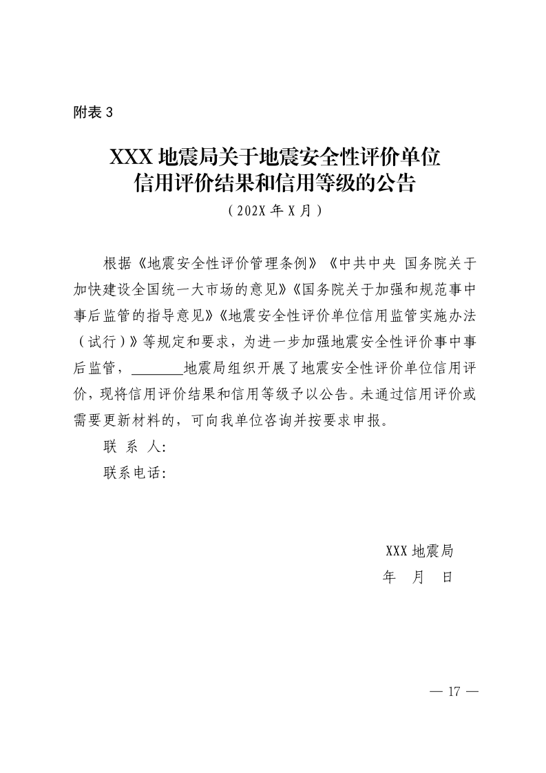 附表3 XXX地震局关于地震安全性评价单位 信用评价结果和信用等级的公告