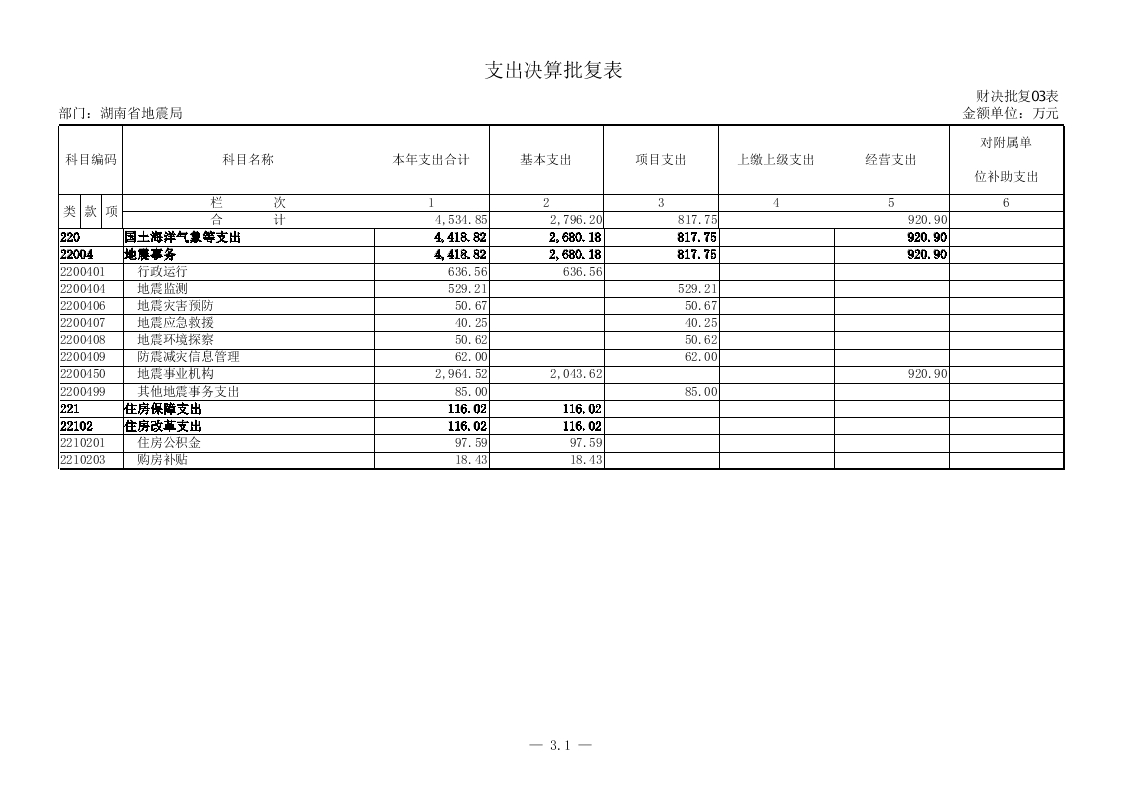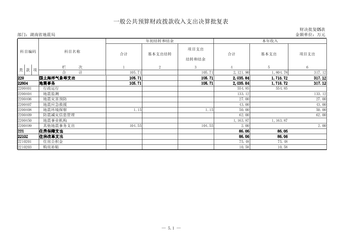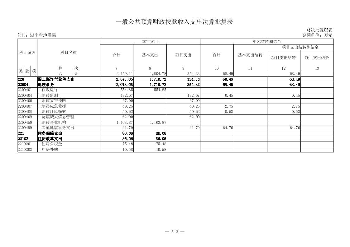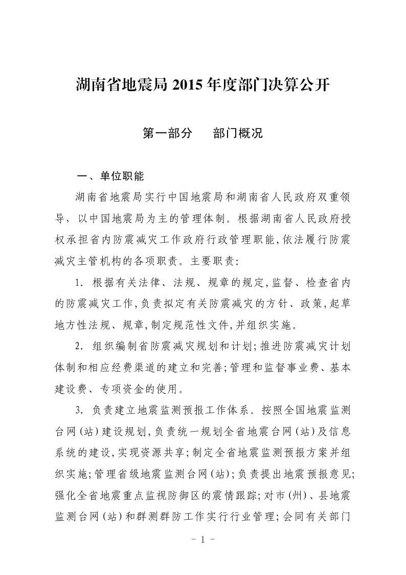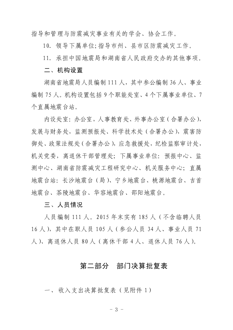 湖南省地震局2015年度部门决算公开