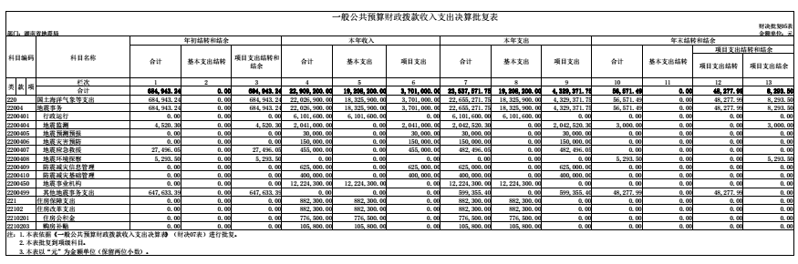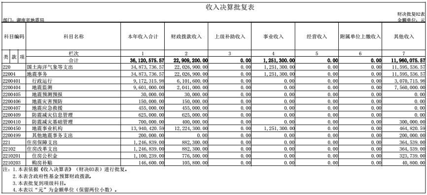 湖南省地震局2016年度部门决算公开