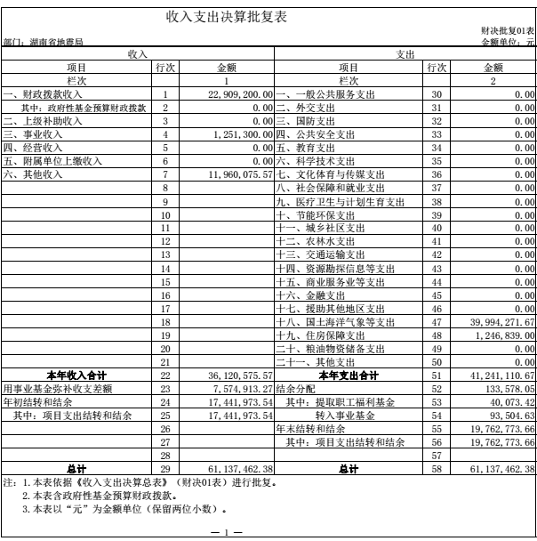 一、 收入支出决算批复表(见附件1)