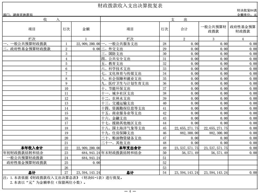 四、 财政拨款收入支出决算批复表(见附件1)