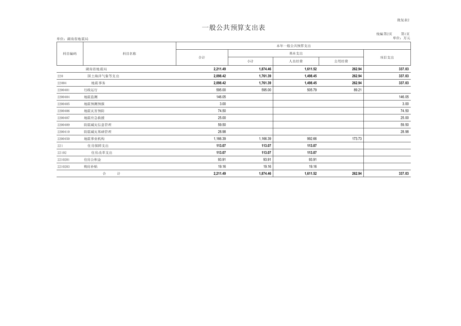 附件1. 湖南省地震局2017年部门预算批复表 (见附件)