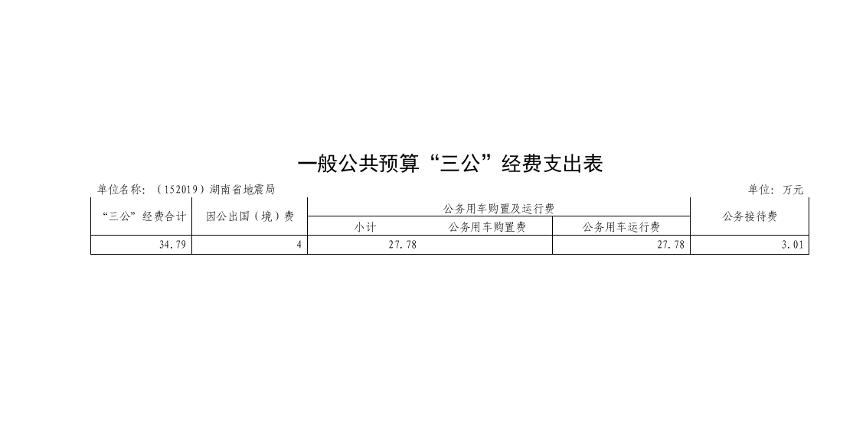 2019 年湖南省地震局三公经费预算公开
