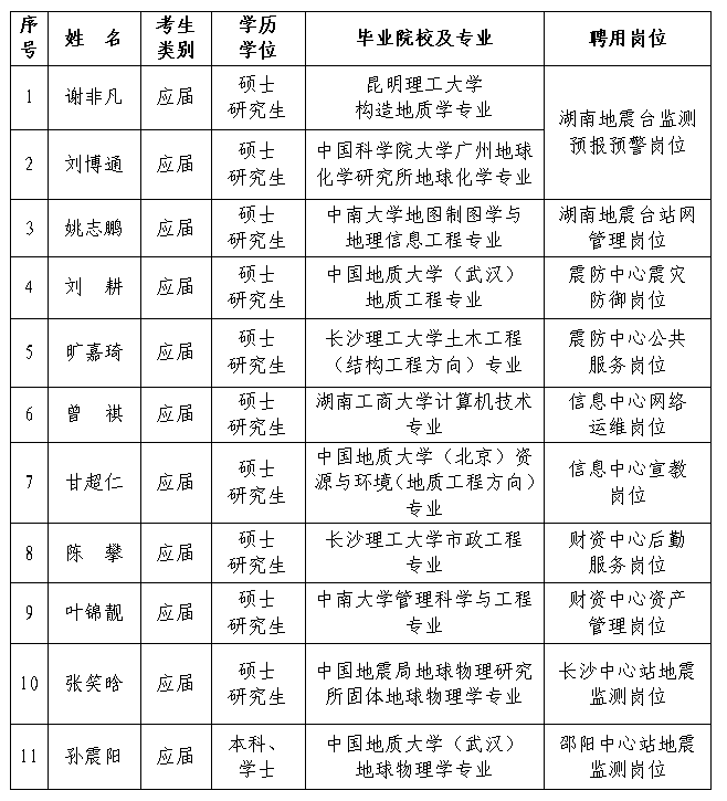 湖南省地震局2023年事业单位公开招聘拟聘用人员公示