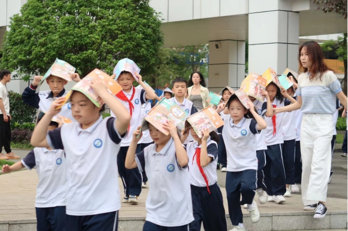 上午10时10分,校园广播发出“地震警报”信号,演练活动正式开始。全校4284名中、小学生在统一指挥下,安全“避震”、迅速撤离,整个过程用时仅8分22秒。演练结束后,高新成章学校通过摆放展板、悬挂标语、发放科普宣传资料等形式进行宣传教育。