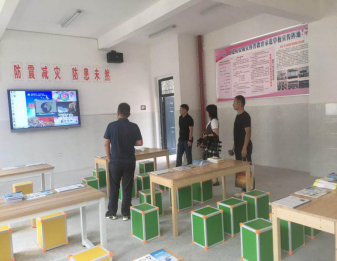 检查组观看学校地震科普宣传视频