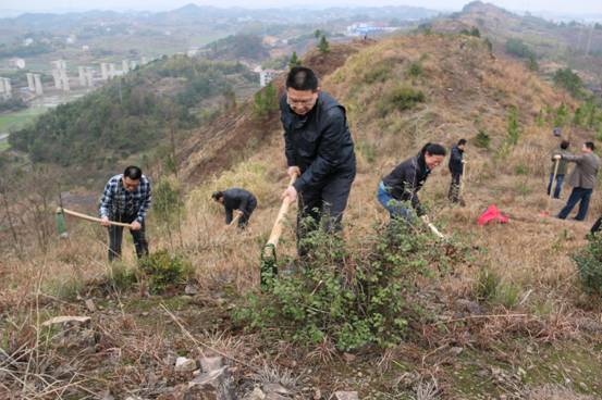 3月14日下午,邵阳市双清区云水铺乡快活村的山头上,一片忙碌的植树造林劳动景象,邵阳市地震局机关全体干部职工在这里参加义务植树活动。