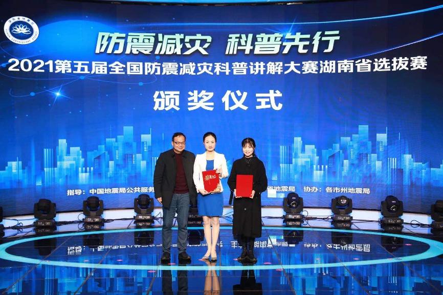 4月14日,第五届全国防震减灾科普讲解大赛湖南选拔赛在长沙落下帷幕,我局选送的湘南学联纪念馆讲解员刘霓佳(衡阳市防震减灾科普基地兼职讲解员)经过激烈的角逐,从58名参赛选手中脱颖而出获得全省二等奖,衡阳代表队同时获得了优秀组织奖。