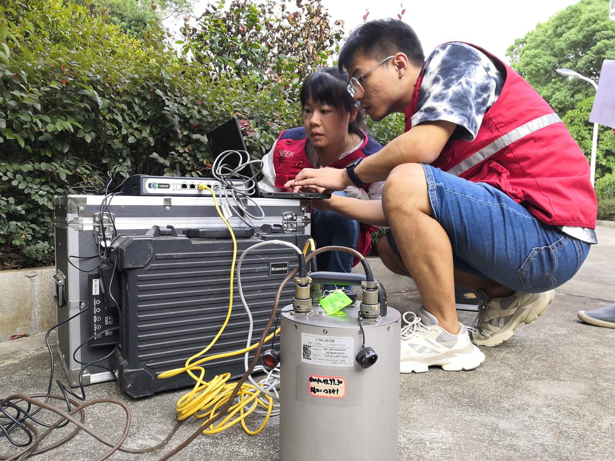 演练模拟在湖南省益阳市某地区发生的地震事件,任务是架设2个流动测震观测台和搭建1个地震流动观测台网中心,监测流动观测设备运行情况、检验队伍的应急能力。流动监测小组负责搭建地震流动台网中心,接收2台流动观测台和益阳地震台共3个台站的实时波形数据,有效实现了具有多台数据交换的系统处理能力。流动台网中心配备不间断供电系统,具备基本的办公条件,达到了应急演练现场要求。