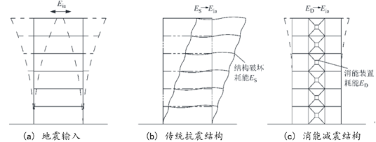 工程消能减震技术,就是把结构物的某些非承重构件(如支撑、剪力墙等)设计成消能构件,或在结构的某些部位(节点或联结处)安装耗能装置(阻尼器等),在风荷载或小地震时,这些消能杆或阻尼器仍处于弹性状态,结构物仍具有足够的侧向刚度,以满足正常使用要求。在中强地震发生时,随着结构受力和变形的增大,这些消能构件和阻尼器率先进入非弹性变形状态,产生较大阻尼,消耗输入结构的地震能量,使主体结构避免进入明显的破坏并迅速衰减结构地震反应,从而保护主体结构在强地震中免遭过度破坏。