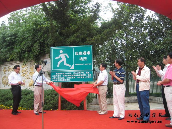 9月25日上午,长沙市王陵公园地震避难场所建成揭牌仪式在公园门前举行。长沙市政府副秘书长余冬阳和市地震局局长尹大德在揭牌仪式上讲话,胡奉湘副局长和长沙市政协副主席李克俭一起为王陵公园地震避难场所揭牌。