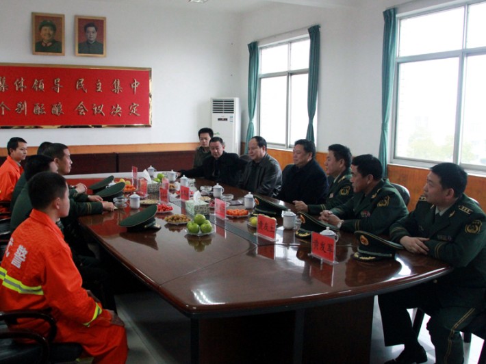 在慰问活动中,胡奉湘一行先后听取了两支救援队2011年的工作汇报,对两支救援队2010年的工作给予了充分肯定,并就2012年如何加强救援队制度建设、救援技能培训及规范化管理等工作同两支部队领导进行了商谈。
